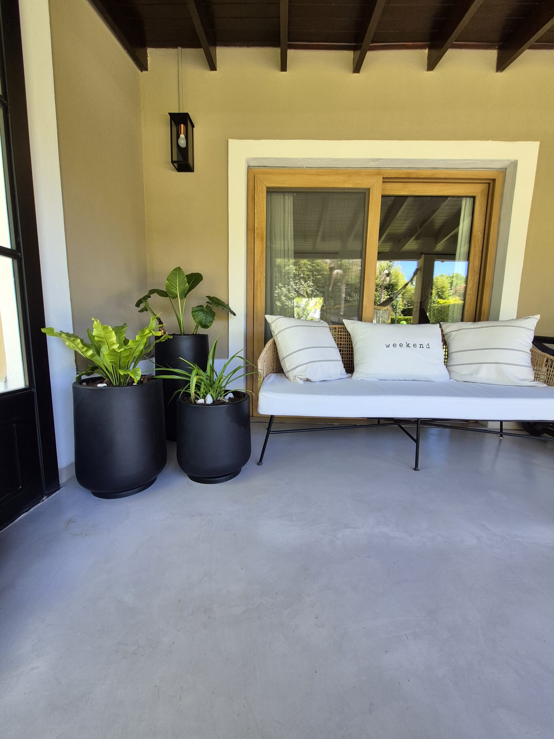 Fabricada en polietileno rotomoldeado de alta densidad, ofrece la solidez visual de las macetas tradicionales pero con una fracción del peso, lo que facilita su movilidad y la hace ideal para balcones, terrazas y espacios de altura.